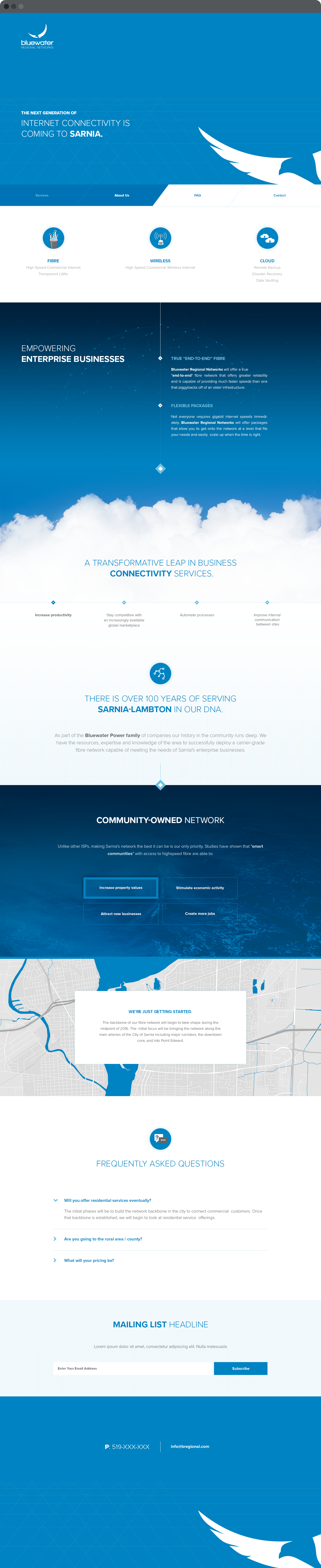 Working with the Kone Marketing team as Lead Web Designer I was in charge of the look and feel of the Bluewater Regional Networks website.